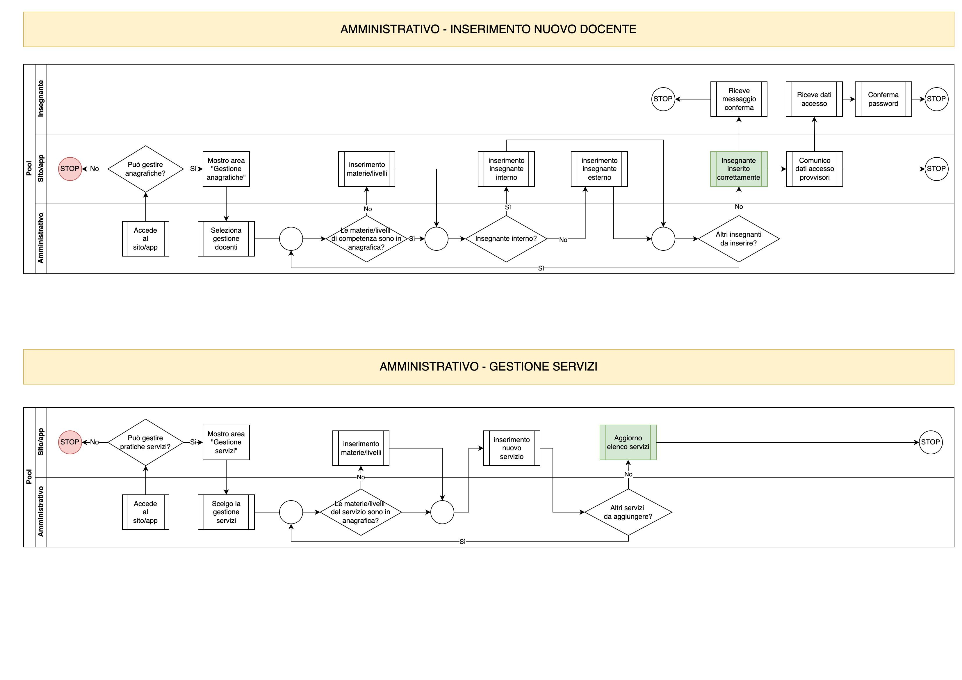 I flussi sono suddivisi in base alle operazioni che possono essere compiute attraverso la piattaforma.